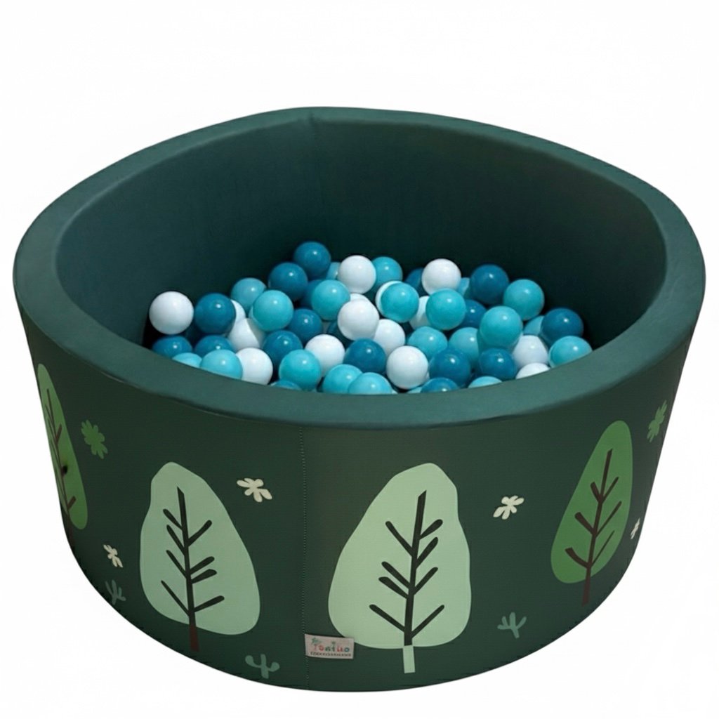 - Three Ball Colors – Comes with white, forest green and turquoise non-toxic play balls.